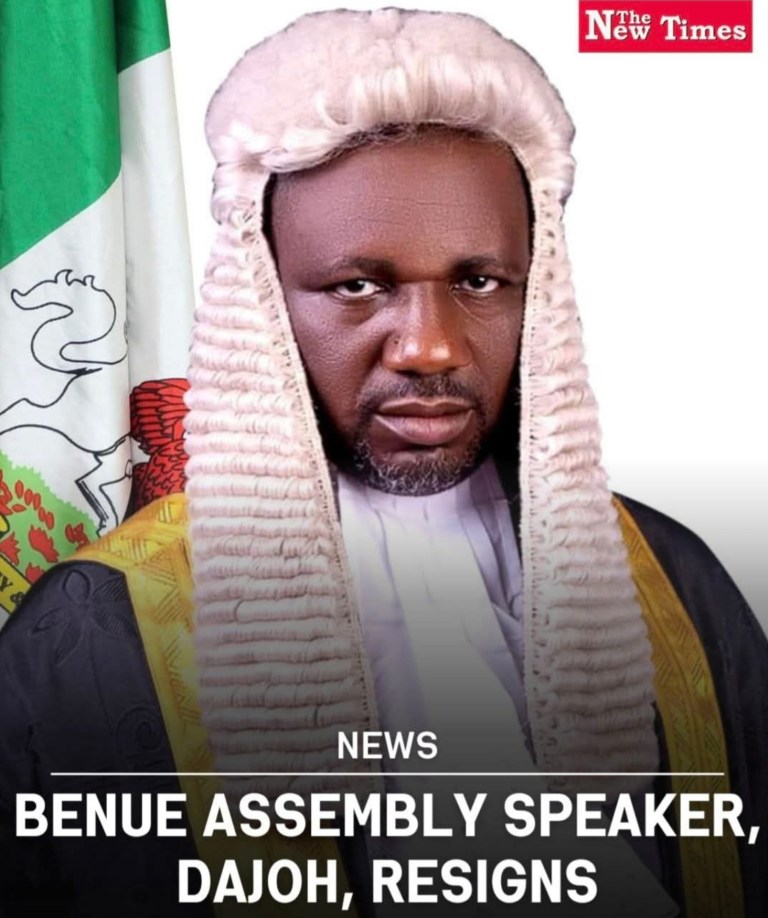 Speaker of the 10th Benue State House of Assembly, Mr. Hyacinth Dajoh, has reportedly resigned from his position.