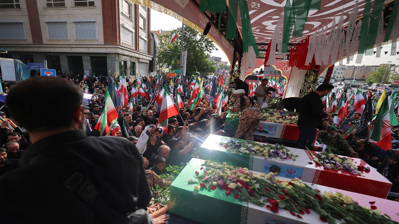 Before the interment of the 60, an 11 -kilometre funeral procession is holding between two important squares in the capital city of Teheran.