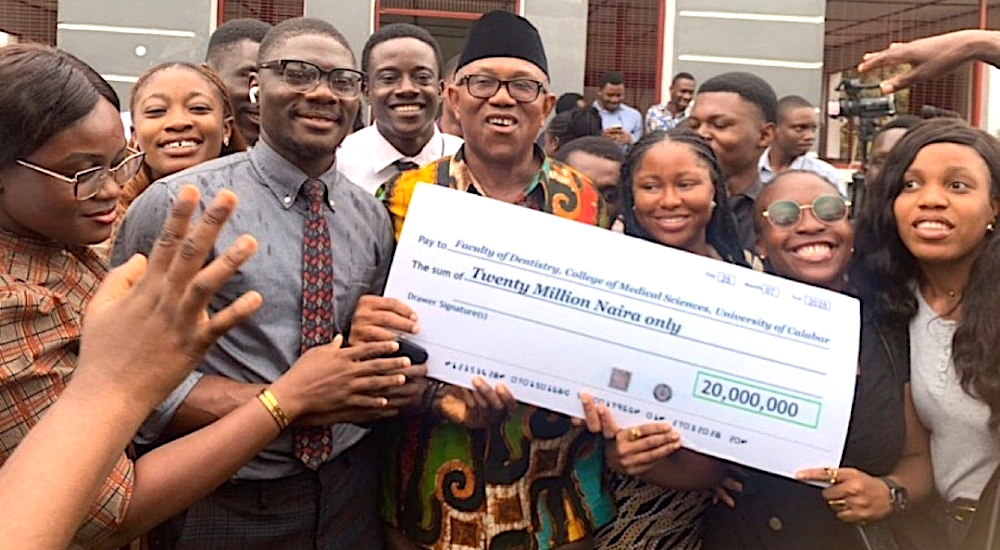 Former Labour Party presidential candidate, Peter Obi, on Friday donated N20 million to the Dentistry Department of the University of Calabar (UniCal).
