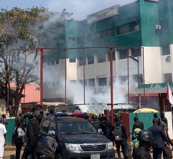 The FCT Police Command on Wednesday sealed the PDP National Secretariat, Wadata Plaza, Abuja, using barbed wire and patrol trucks—one day after a violent showdown between rival party factions.