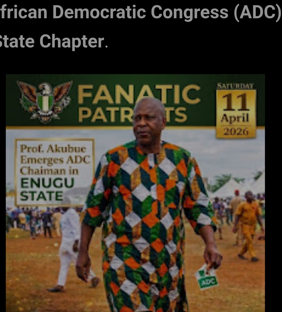 Enugu State ADC Chairman-elect, Prof. Augustine Akubue reacted to allegation by Concerned ADC Stakeholders against his person. He tagged the allegation as false.