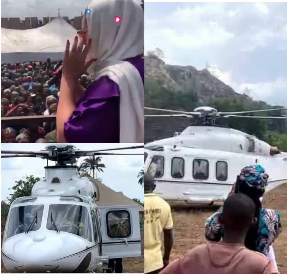 The maverick Kogi Central Senator, Natasha Akpoti-Uduanghan defied all odds against her and stormed her constituency by a helicopter on Tuesday. She arrived to the warm embrace of her constituents and supporters waiting for her arrival.