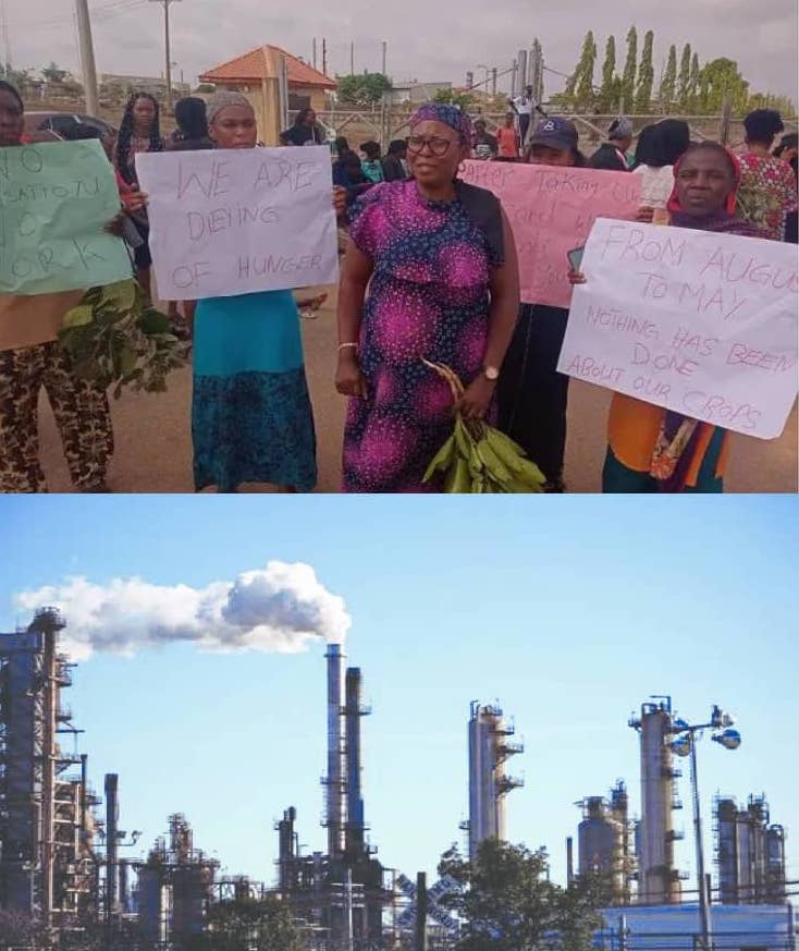 Women from the Nissi, Kapam, and Rido communities staged a protest on Monday at the Kaduna Refinery and Petrochemical Company over alleged chemical pollution that has reportedly affected their health, farmland, and livelihoods.