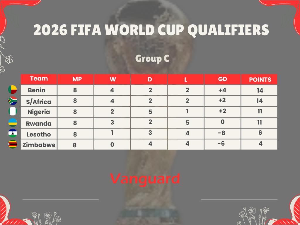- South Africa now sits behind Benin, which holds a narrow advantage on goal difference.